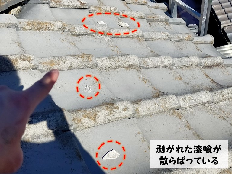 高石市にて屋根や外壁の塗装と漆喰詰め直しの調査を行いました!