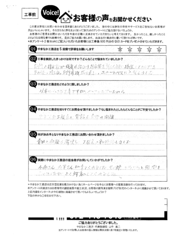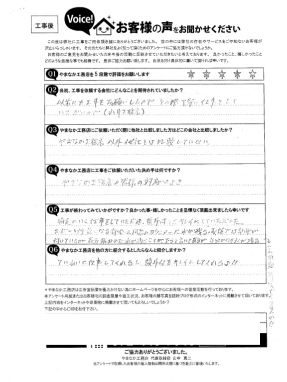 - 以前にも工事をお願いしたので、その際丁寧に仕事をしていただいたので(やまなか工務店)