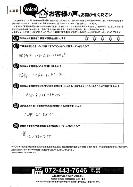 - 弊社を知りすぐにお問合せ頂けましたか?もし悩まれたとしたらどんなことがご不安でしたか?