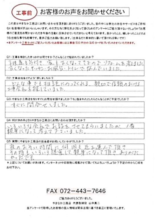 - どんな事でも相談にのってくれる、親切で信頼のおける工事会社を探していました。