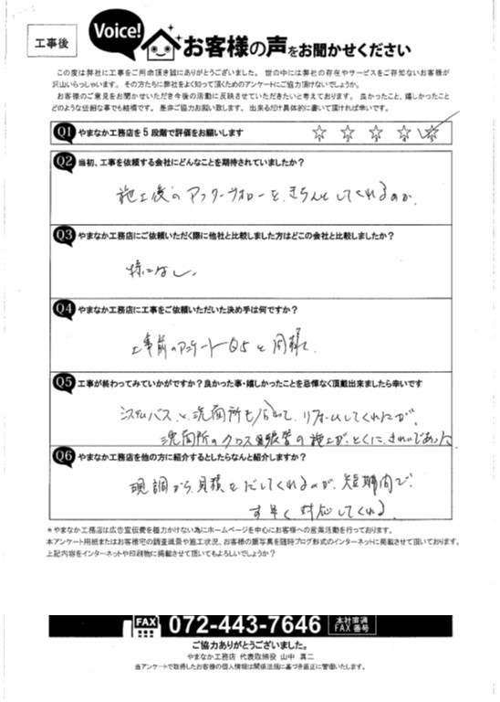 岸和田市で浴室(ユニットバス)と洗面所の改修工事をしたK様の声