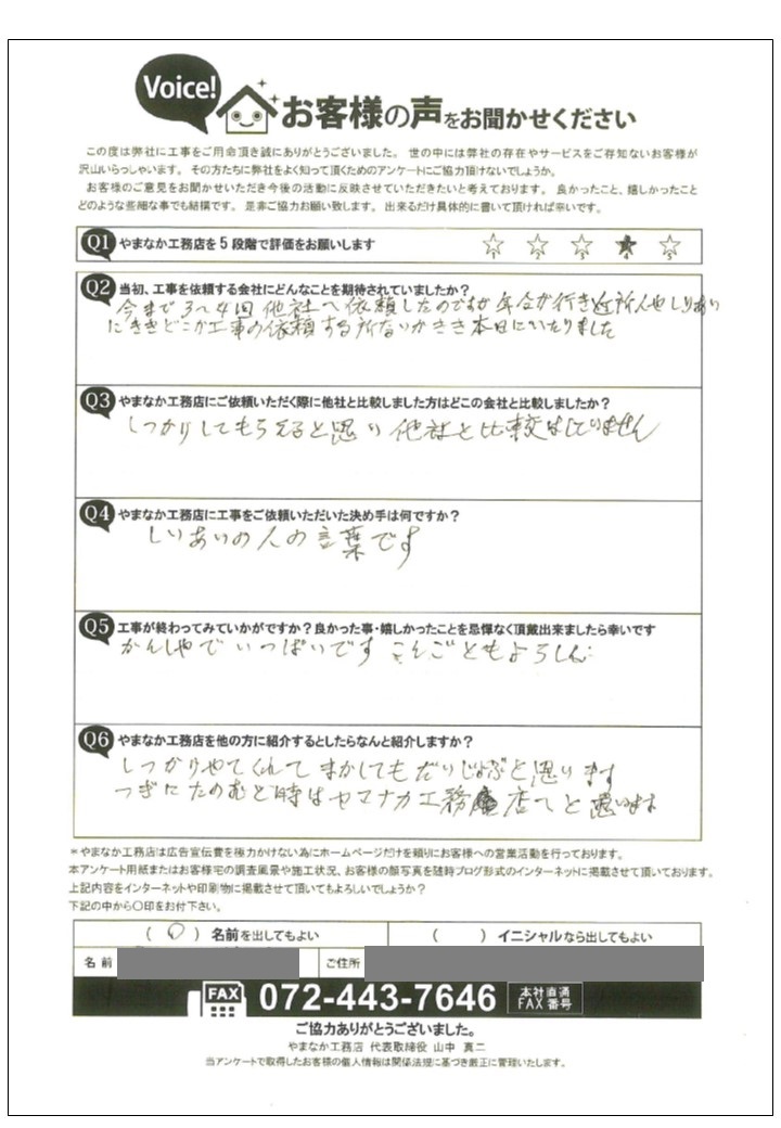 - しっかりやってくれてまかしても大丈夫だと思います。次に頼む時はやまなか工務店と思います。
