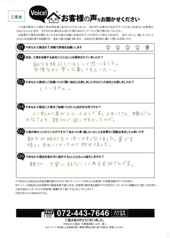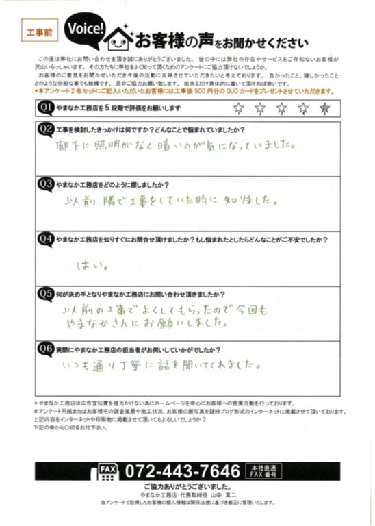 - 以前の工事でよくしてもらったので、今回もやまなかさんにお願いしました。