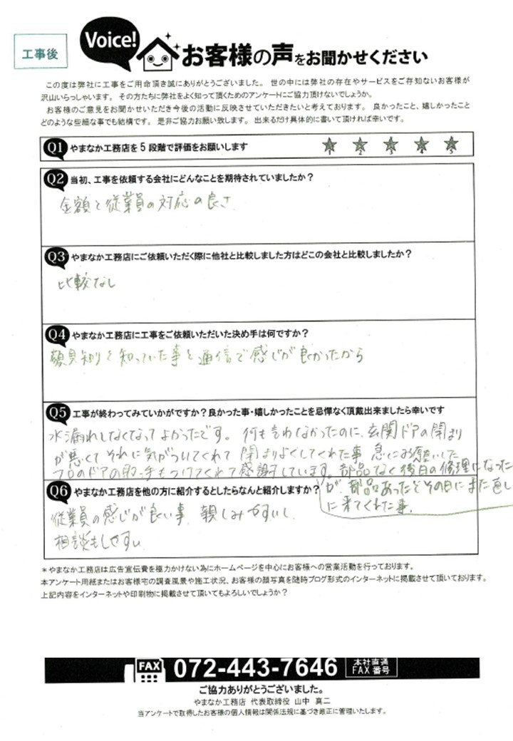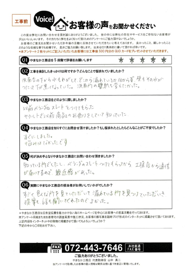 熊取町にて洗面台のホースを入れ替えたY様の声