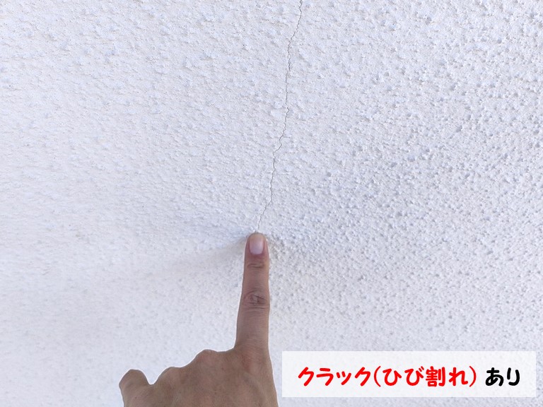現場調査にお伺いしたところ、外壁のあちらこちらにクラック(ひび割れ)を発見しました。